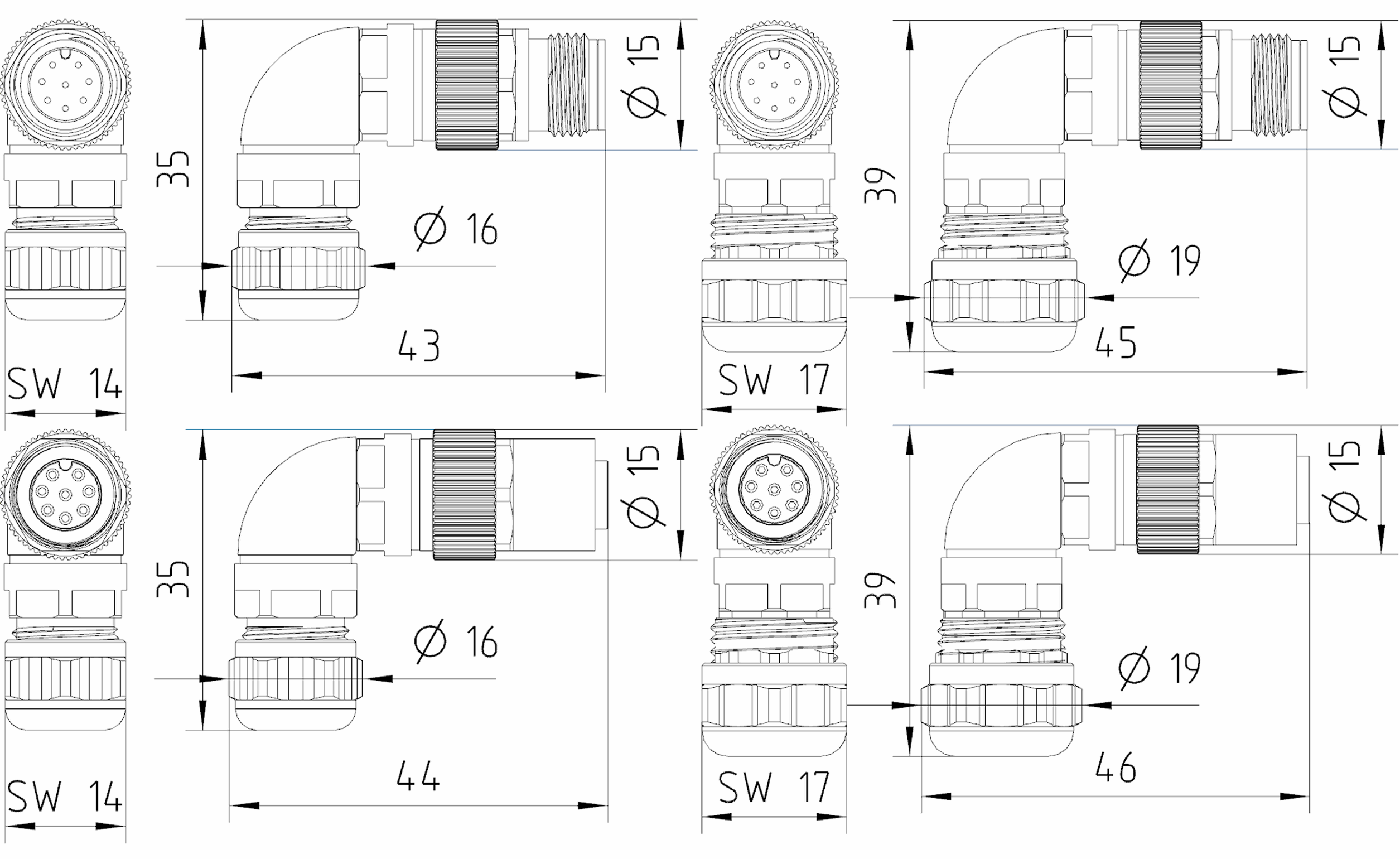 M12 A-8 90°connector cable gland