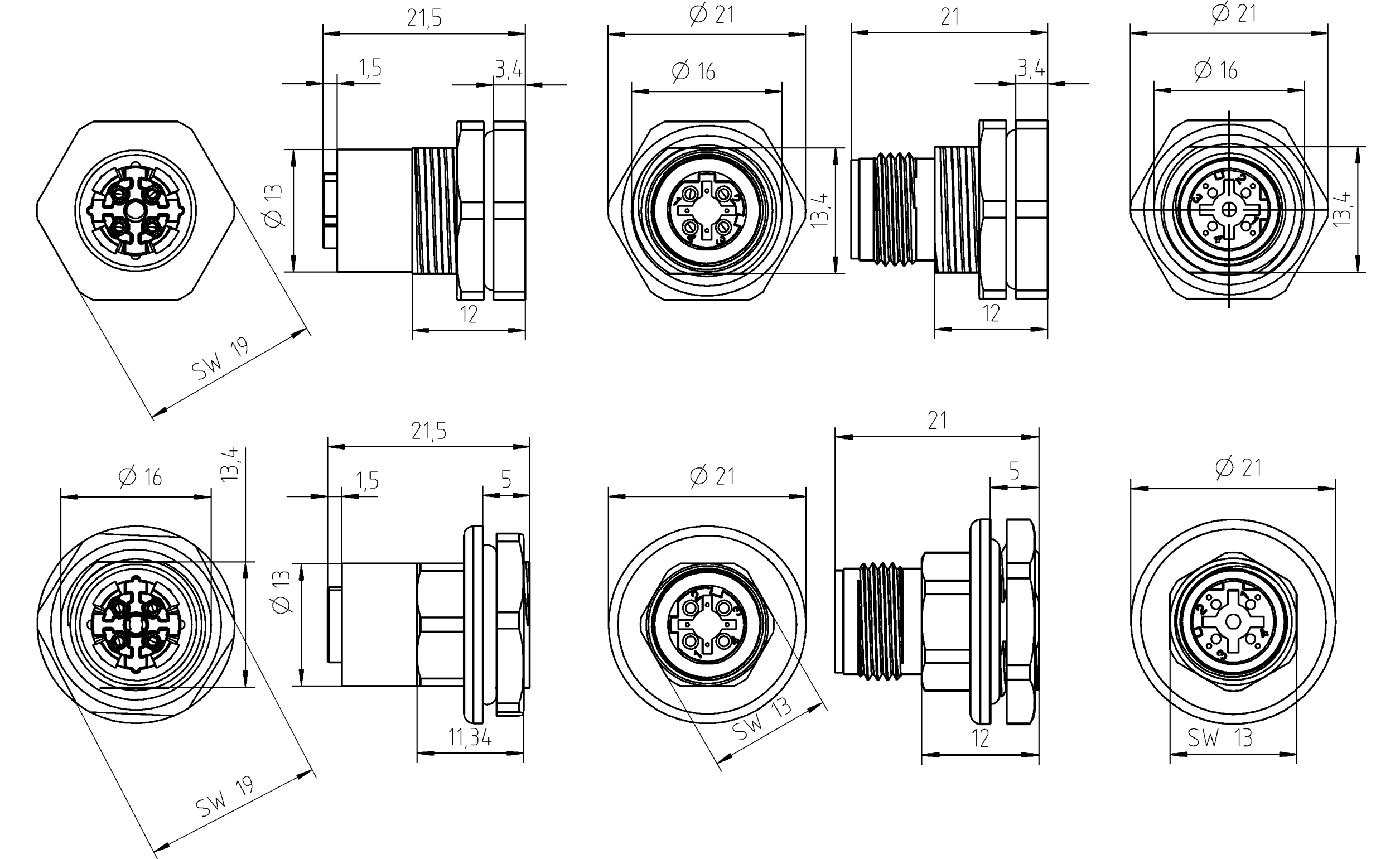 M12 D-coded Industrial Ethernet Panel mount crimp connectors