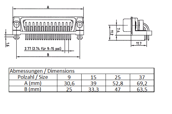 • D-Sub Filtersteckverbinder Einlöt abgewinkelt mit Erdungswinkel, Rastnase und Gewinde