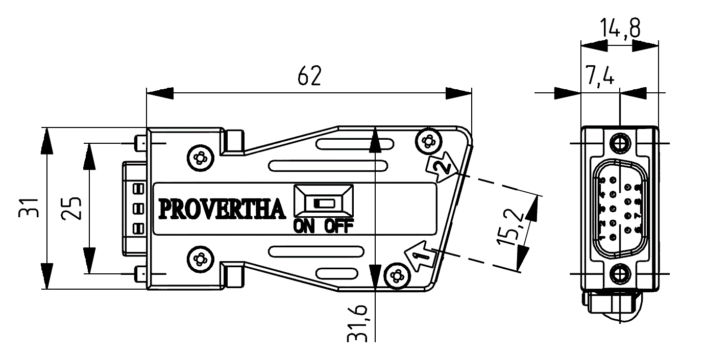 - Kabelanschluss: 180° zur D-Sub Steckrichtung